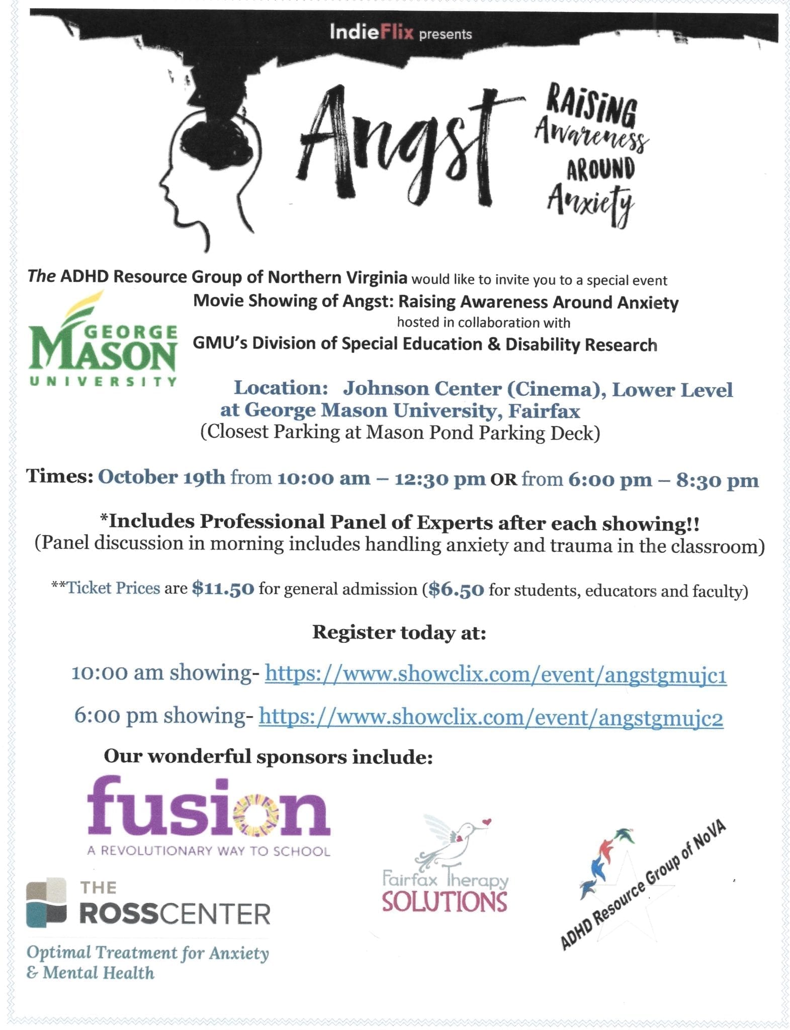 So many of us live with anxiety – but there is hope. Join us in viewing the documentary ANGST, featuring Michael Phelps, at George Mason University on October 19th at 10am and 6pm. The film highlights students living with anxiety disorders and how they can be helped. This is a great way to start a discussion with pre-teens, adolescents, parents, and educators about anxiety. There will be a panel of professionals, including Ross Center psychologist Dr. Avy Stock, who will answer questions and provide guidance in dealing with anxiety.